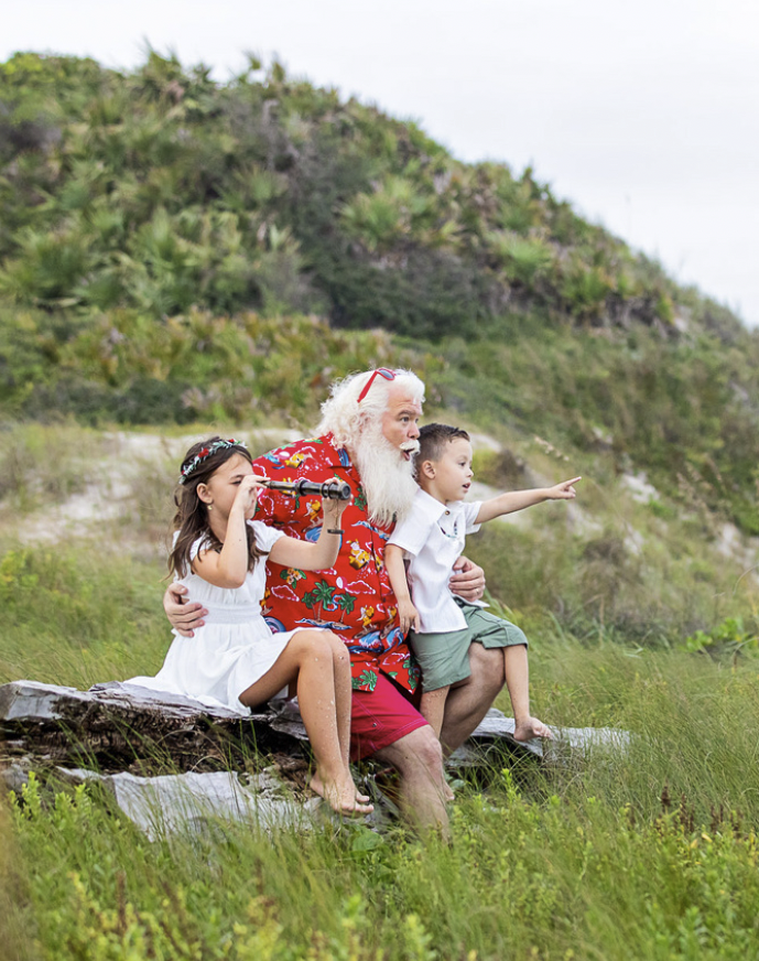Imagine: your child spots Santa in a Hawaiian shirt under a peppermint umbrella at the beach.